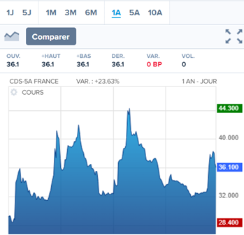 נראה שיש עלייה בקצב קניית הבטחונות למול החוב הצרפתי של כ23%. נתון זה בנוסף לעובדה ששיעור התעסוקה בצרפת לא השתנה ברבעון האחרון והתוצר שלה עלה רק ב0.3% מראה שלצרפת יש בעיה של מימון הוצאותיה באמצעות מסים.