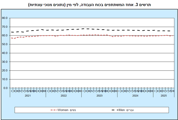 שיעור המשתתפים בכוח העבודה בישראל עלה ל62.7% מ62.4% בחודש הקודם. ושיעור המועסקים מכלל האוכלוסיה 60.8% לעומת 60.7% בחודש הקודם. נראה שיש יותר עובדים בישראל, אך שיעור האבטלה עולה יותר משיעור המועסקים.