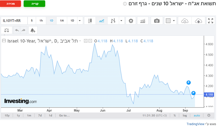 4.118% ונמצאת במגמת ירידה בשנה החולפת. השוק צופה הורדת ריביות בעתיד.