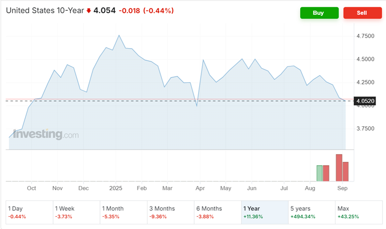 התשואה עלתה בשנה האחרונה בכ11%, אך בחצי השנה האחרונה היא במגמת ירידה. כרגע תשואת האג”ח ל10 שנים היא 4.054%.